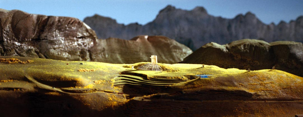 This international school, containing classrooms, administrative offices, auditoriums, gymnasium, two restaurants, a bar, and a training kitchen, is located in Omegna, Italy, at the top of a mountain peak on the northern tip of Lake d’Orta. It is oriented to take maximum advantage of views of the water and the beautiful mountain ridges which frame the southern tip of the lake. The only portion of the building complex visible from the city is a tall, circular observation tower which points in the direction of the lake and appears as an inviting landmark from the city below. This tower marks the public entry to the school. Visitors approach from the northern ridge of the site, and only upon entering the tower do they suddenly perceive the spectacular view of the lake beyond. From this entry/reception area, visitors then descend to either the classrooms to the north or the dining facilities to the south. Residential units step gently downward in successive terraces following the natural contours of the site, so that all units have lake views and private gardens, without being visible from one another.