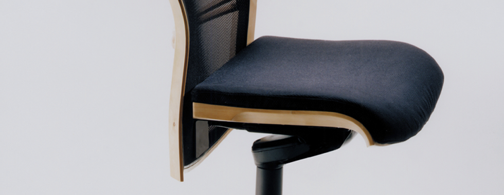 Office Seating system in wood consists of operational, managerial, and executive models. Except for the synchron tilt mechanism of steel and aluminum the entire chair is made of recyclable and/or renewable materials such as; stretchable fabric, and wooden frames. The back goes up and down to adjust for lumbar requirements being able to tilt back up to 20 degrees. The seat slides backward and forward, both tilting forward 4 degrees and/or tilting back 10 degrees synchronously with the backrests’ tilting of 20 degrees. It is equipped with adjustable and non-adjustable armrests.